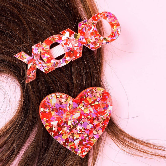 Heart & XOXO Hair Clips - Valentine's Day Set
